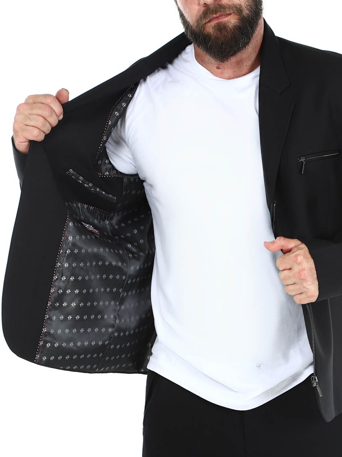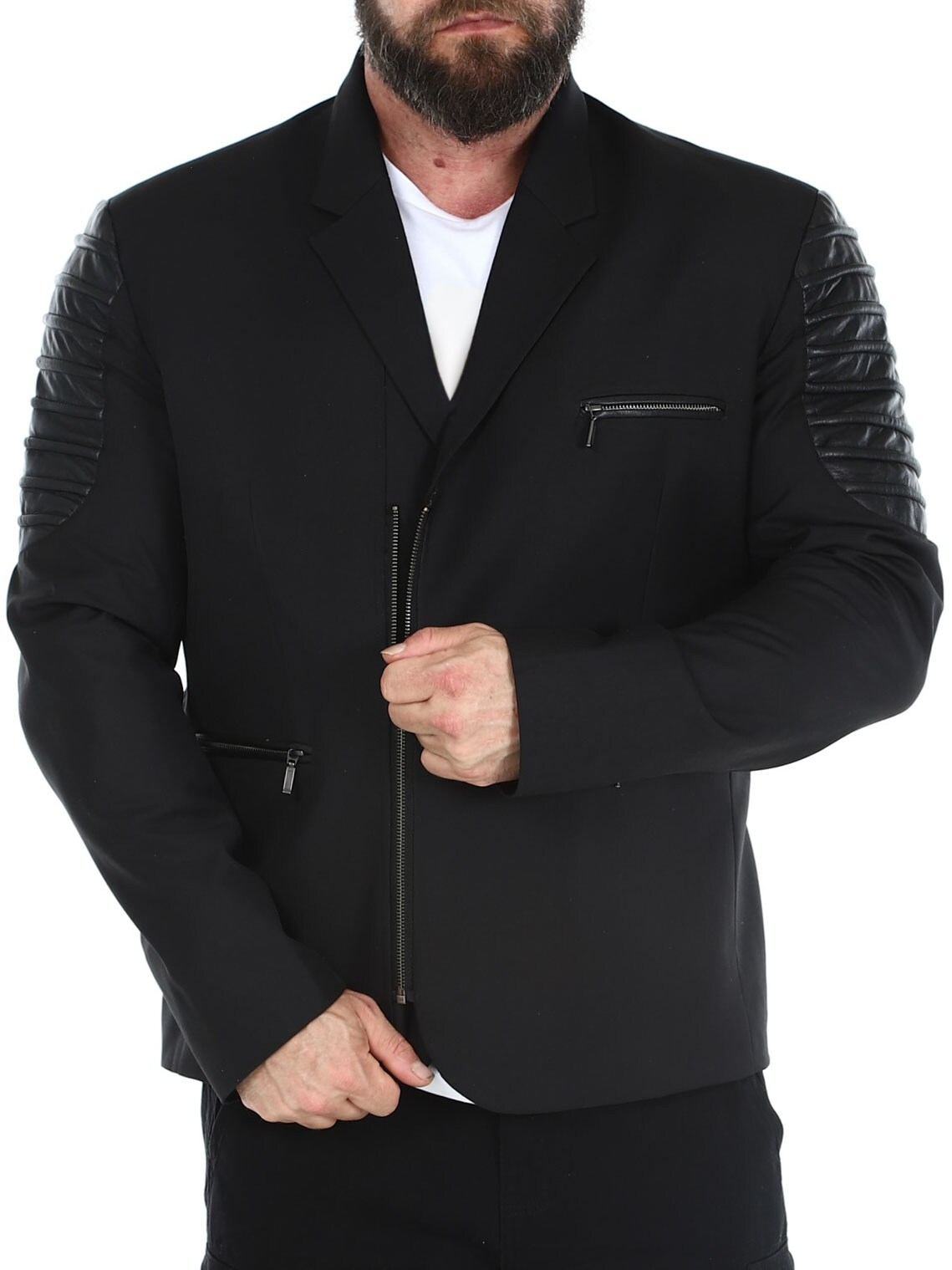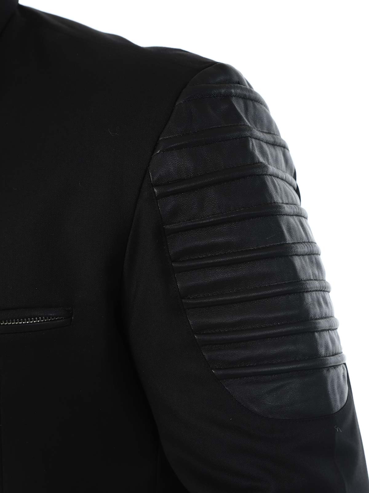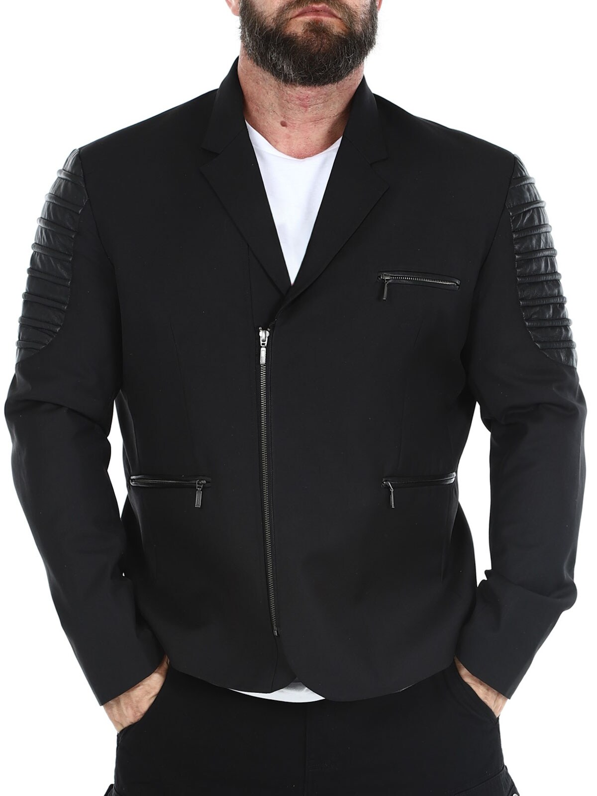 Puuvillatakki, jossa on vetoketjukiinnitys ja tekonahkaisia osioita. Takissa on kolme vetoketjullista etutaskua ja kolme avointa sisätaskua. Tämä rokkaava bleiseri on saatavilla vain RockDenimiltä!