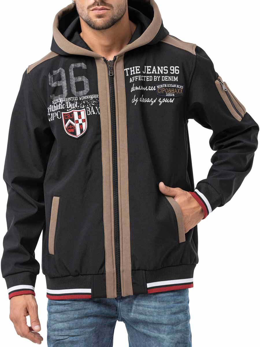 Musta takki, jossa on collegekangasdetaljeja ja valkoinen painatus edessä. Takissa on huppu, resorit helmassa ja hihansuissa sekä kaksi etutaskua. Monipuolinen takki, joka yhdistää mukavuuden, asenteen ja tyylin. Sopii yhtä hyvin farkkujen kuin tyylikkäiden jogger-housujen kanssa.