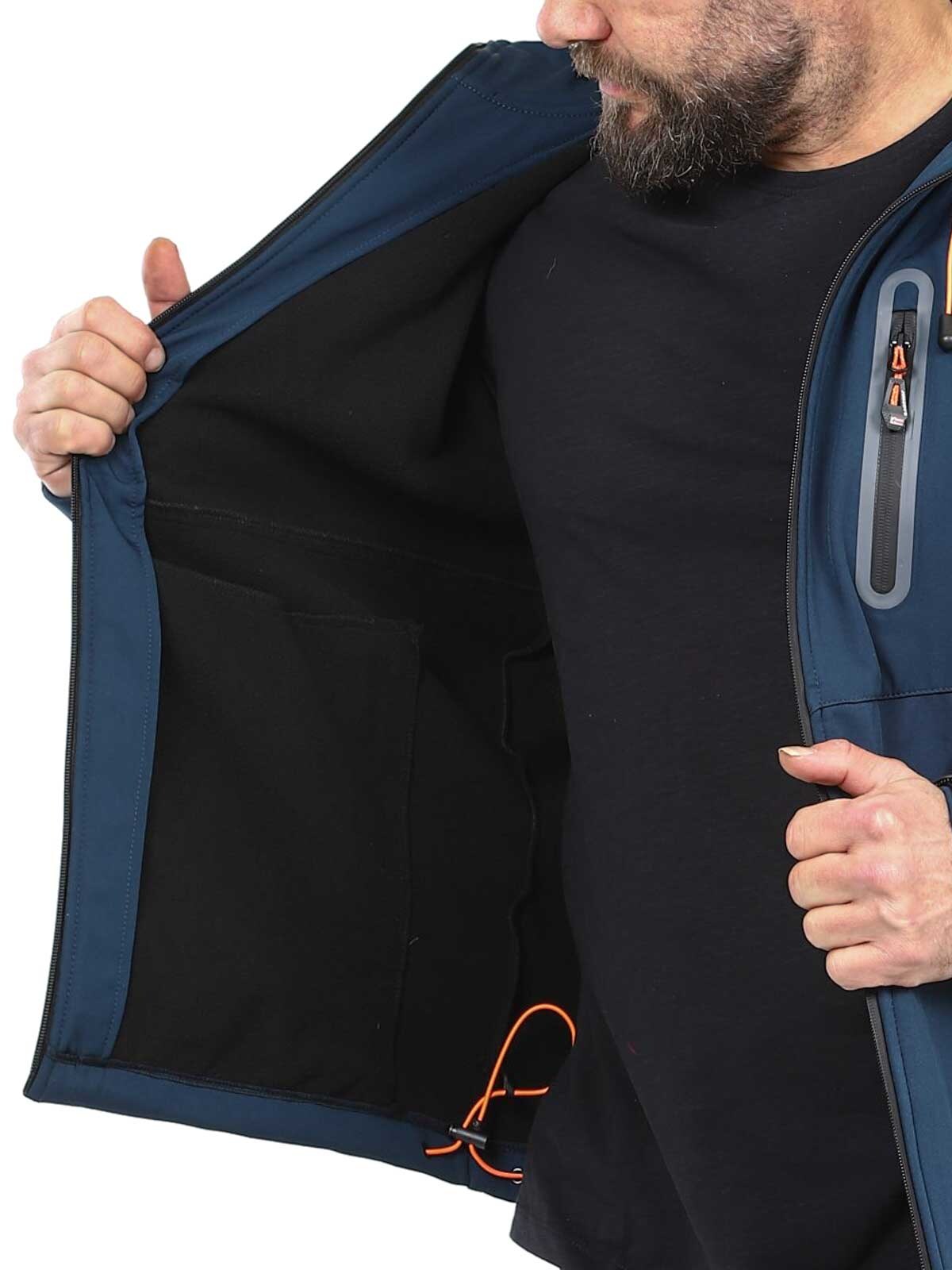 Toiminnallinen softshell-takki, jossa on teipatut saumat ja säänkestävät ominaisuudet. Säädettävä huppu ja useita suljettavia taskuja. Hihansuita ja helman alareunaa on mahdollista säätää ja kiristää.