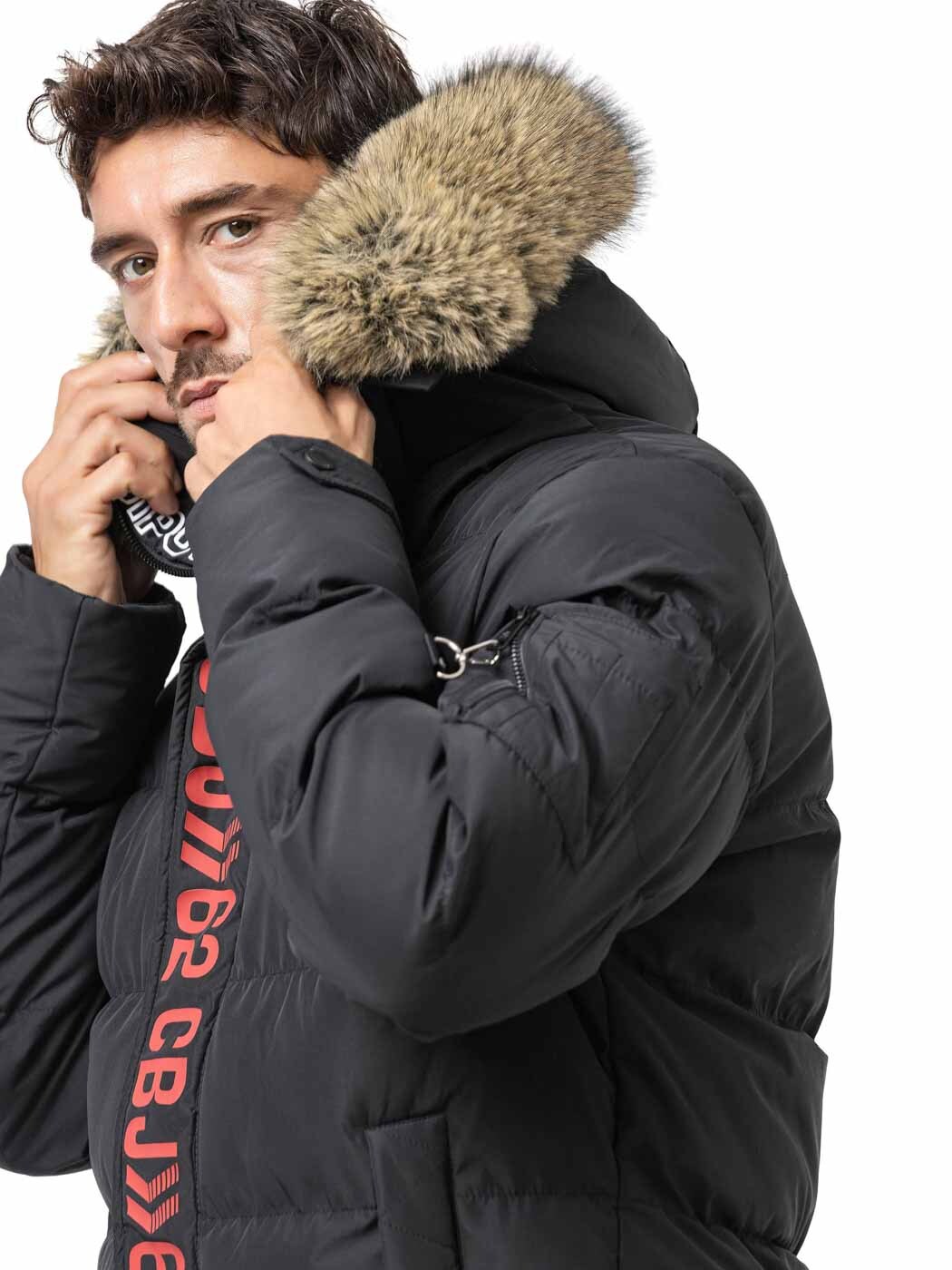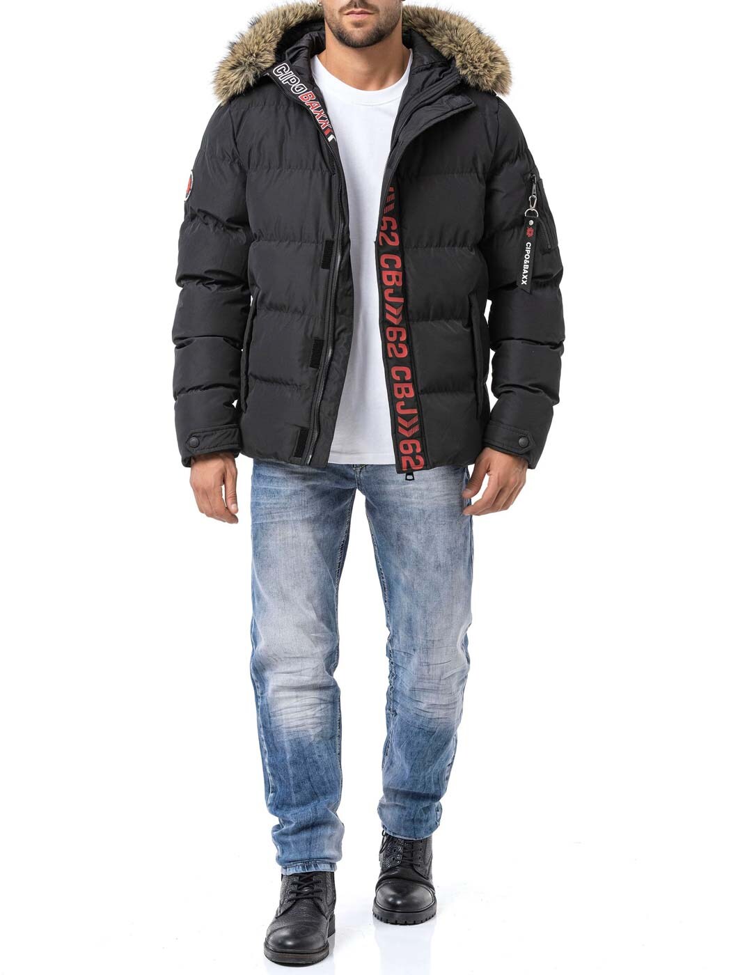 Cipo & Baxx Aylmer on musta miesten untuvatakki, joka yhdistää lämpimän toiminnallisuuden erottuvaan urbaaniin tyyliin.