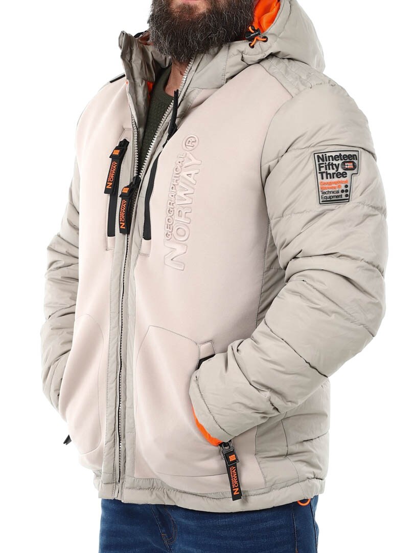 Vuorellinen takki, joka on sekä tuulen- että vedenpitävä. Neljä vetoketjullista etutaskua ja kaksi avointa sisätaskua. Kiristysnauhat hupussa ja vyötärönauhassa.