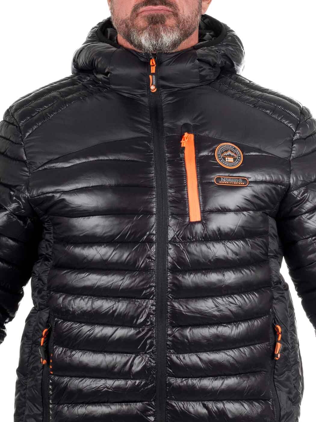 Tyylikäs kevyttoppatakki kiiltävällä pinnalla ja oransseilla yksityiskohdilla. Takki on kevyesti topattu ja tarjoaa tehokasta lämpöä ilman raskasta tunnetta. Useita käytännöllisiä taskuja, huppu ja hillityt logomerkit viimeistelevät modernin ilmeen. Täydellinen välikausiin tai lämmittäväksi kerrokseksi kylmemmille päiville.