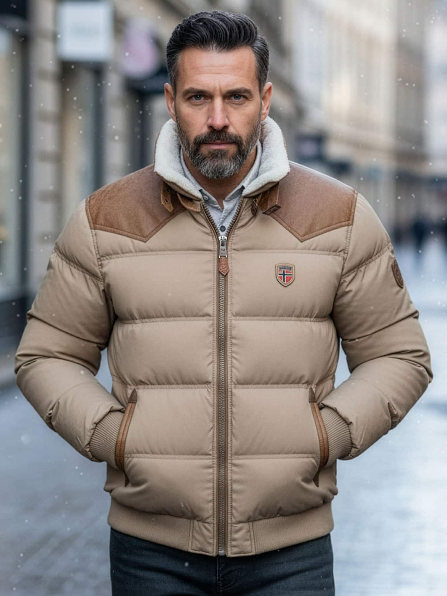 Takissa on maskuliininen malli, keinonahkaisilla yksityiskohdilla olkapäillä ja kyynärpäissä. Kaksi taskua vyötäröllä ja kaksi sisäpuolella. Tämä takki pitää taatusti kantajansa tyylikkäänä ja lämpimänä läpi talven!
