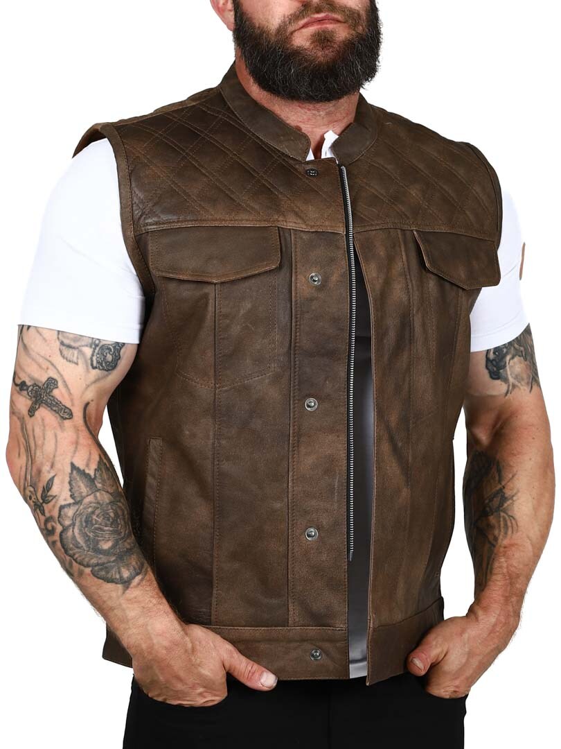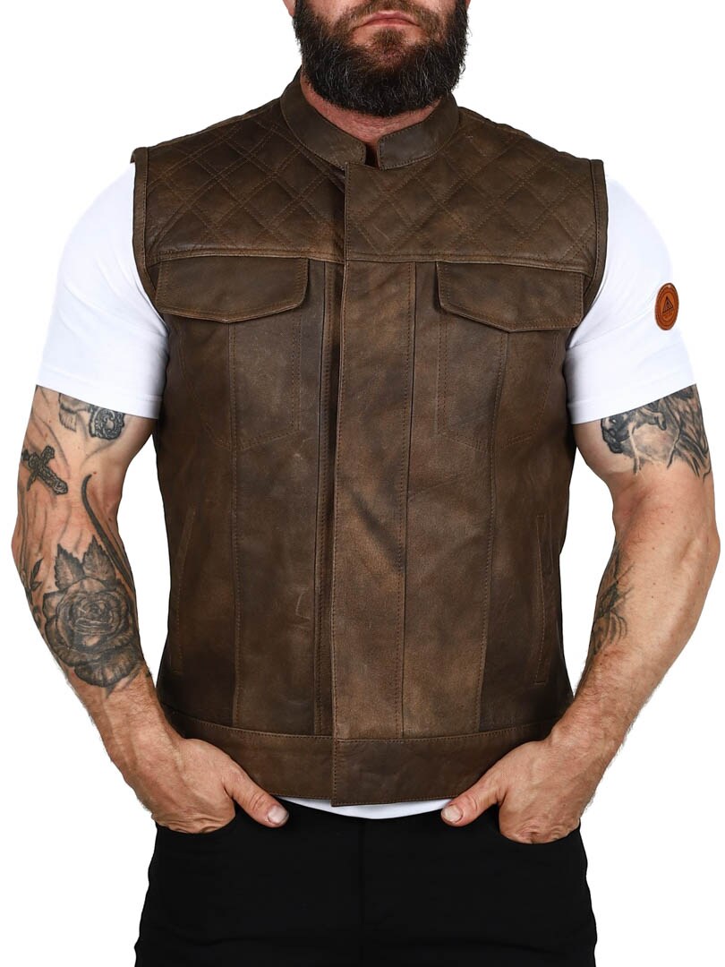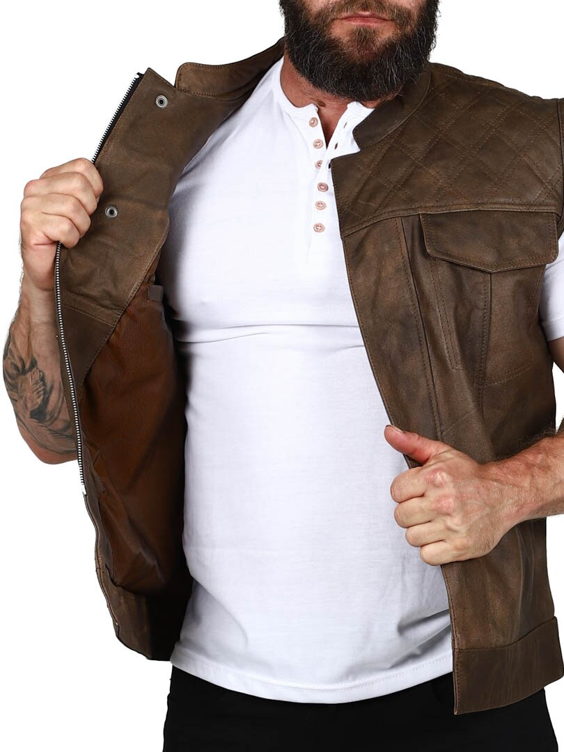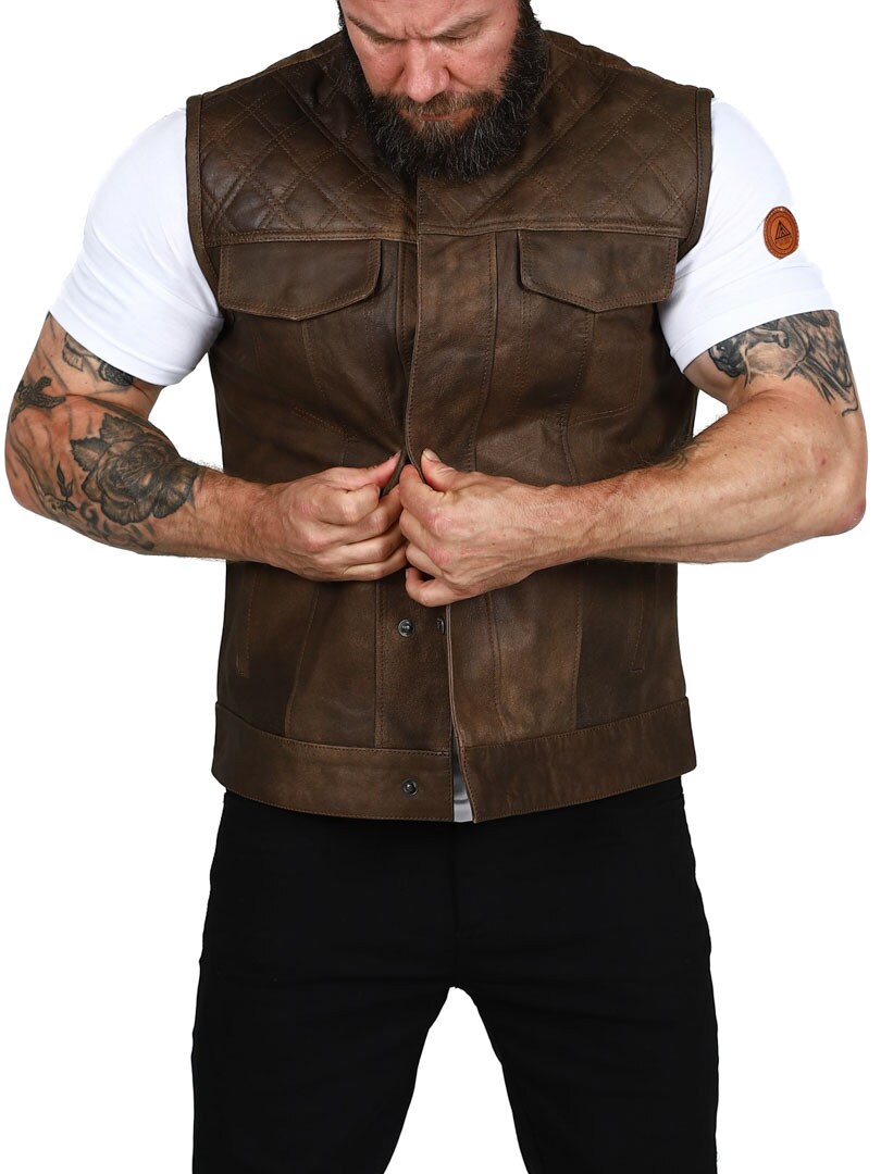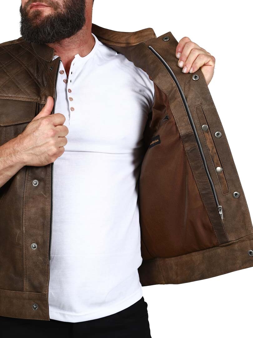 Jämäkkä, aito nahkaliivi, jossa on matala kaulus. Liivissä on kaksi suljettavaa rintataskua, kaksi avotaskua vatsan päällä ja kaksi avointa sisätaskua. Liivi sulkeutuu sekä vetoketjulla että napeilla. Tämän liivin löydät ainoastaan Rockdenimiltä!