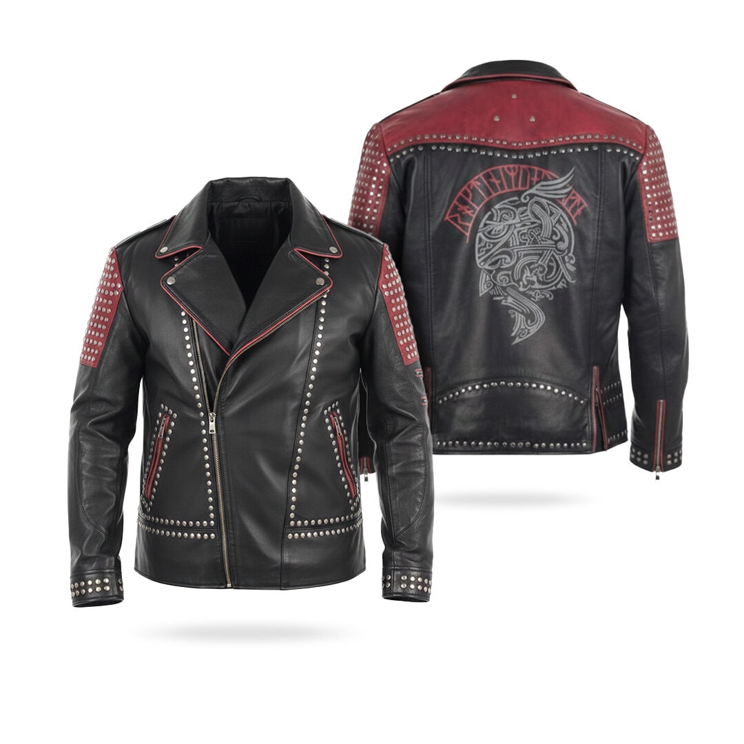 Rohkea, huomiota herättävä nahkatakki, joka on suunniteltu kääntämään päitä ja korostamaan viikinkimäistä asennetta ja rock-estetiikkaa maksimaalisesti. Tämä takki on voimakas statement-vaate rohkeille, pelottomille miehille, joilla on tinkimätön tyyli. Valmistettu paksusta aidosta nahasta, jossa on puhdasta rocktähtiasennetta – tässä takissa ei ole mitään hienovaraista!
