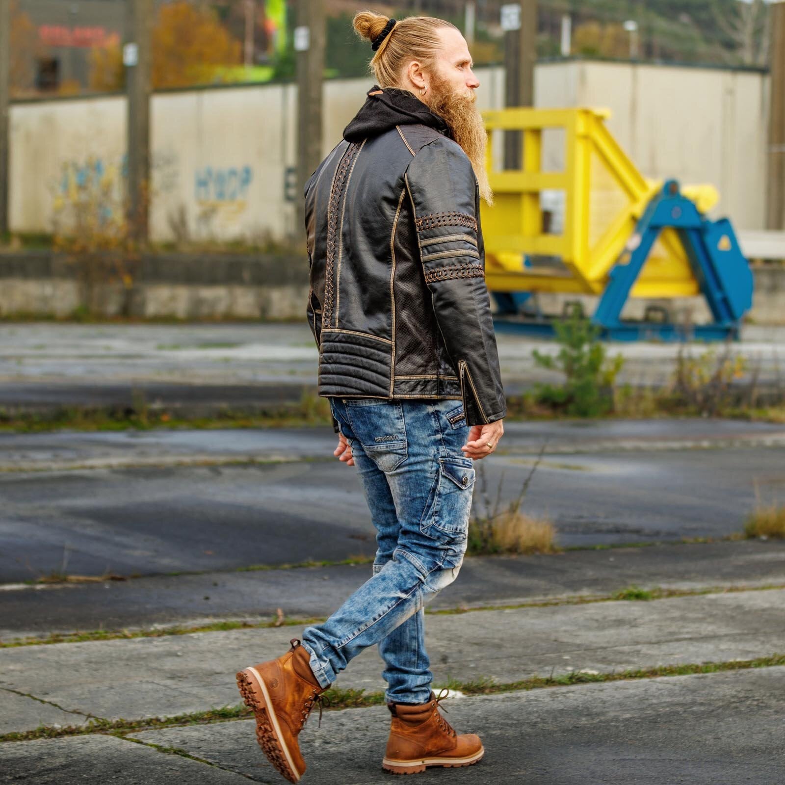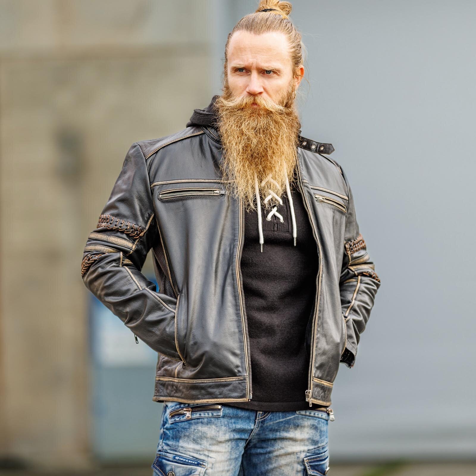 Tämä asukokonaisuus on luotu miehelle, joka ei pelkää erottua. Yhdistelmä nahkaa, pehmeää neulosta ja maailman tunnetuimpia kenkiä.