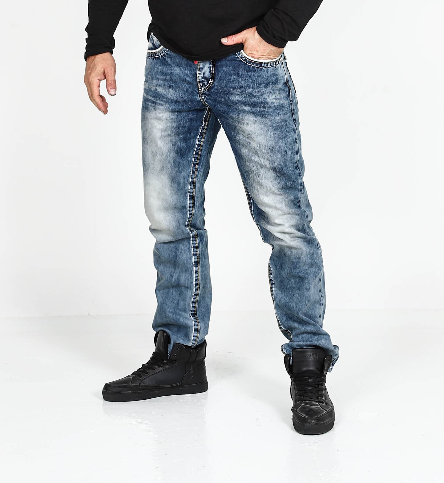 Haluatko asukokonaisuuden, joka puhuu puolestaan? Tämä Cipo & Baxx -yhdistelmä määrittelee modernin asenteen. Tässä ikonen, epäsymmetrinen muotoilu kohtaa rouhean ja teollisen denim-tyylin. Tämä on streetwearia miehelle, joka haluaa erottua ja vaatii vaatteiltaan sekä tyyliä että toimivuutta.